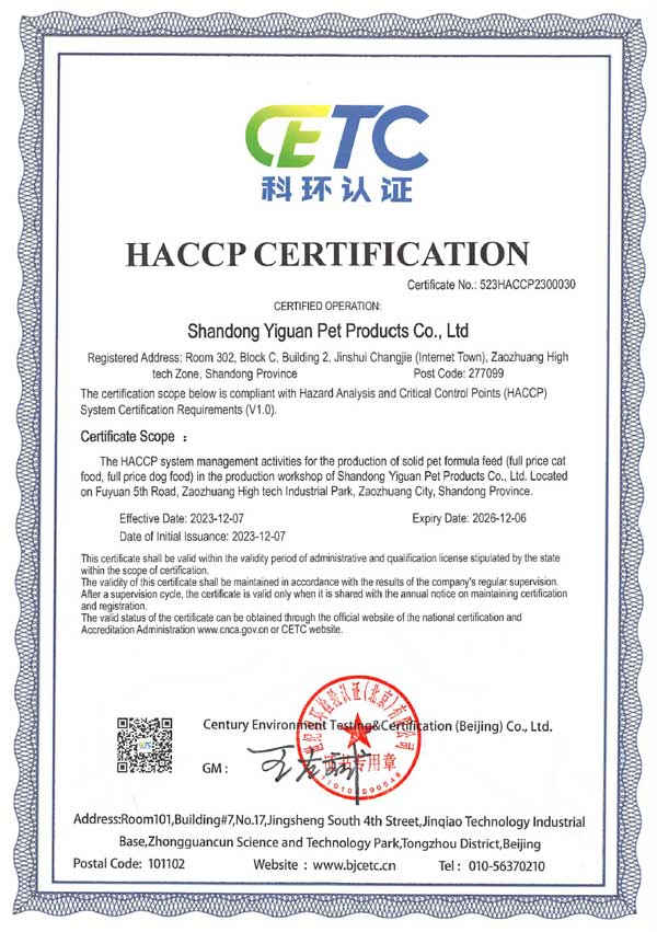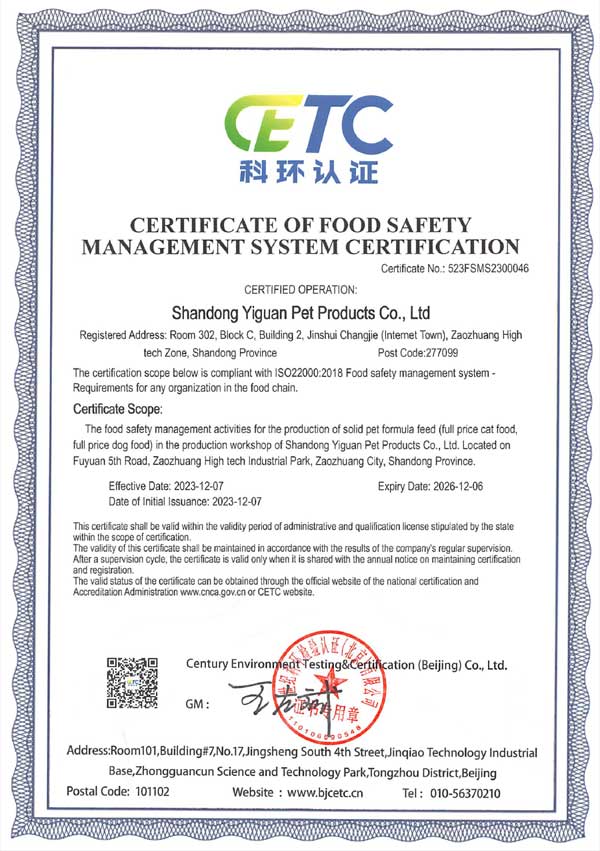 We are a professional pet product manufacturer with over 20 years of industry experience, Supported by a professional R&D team and modern production lines, we operate under standardized manufacturing and strict quality control systems. Our products are certified under ISO 22000 Food Safety Management System, delivering safe, stable, and market-competitive solutions for global pet brands and partners.